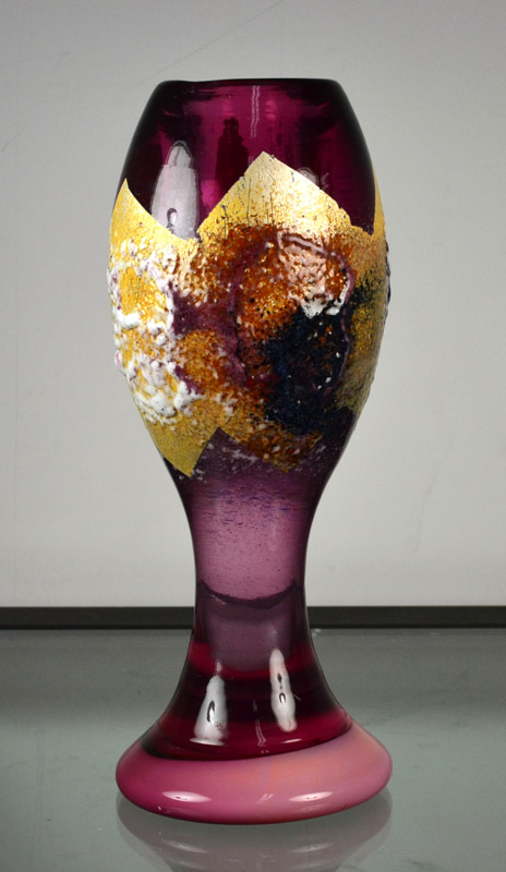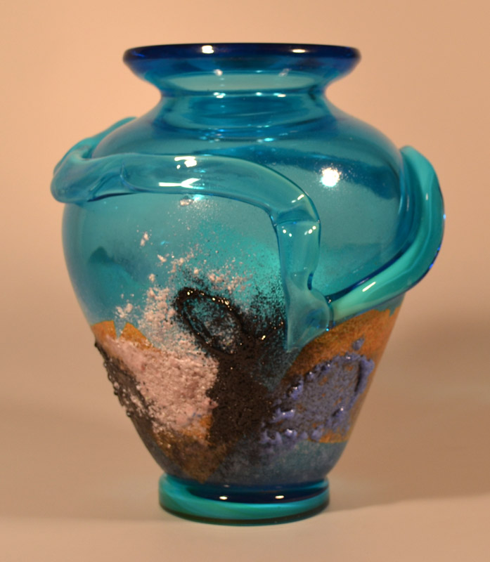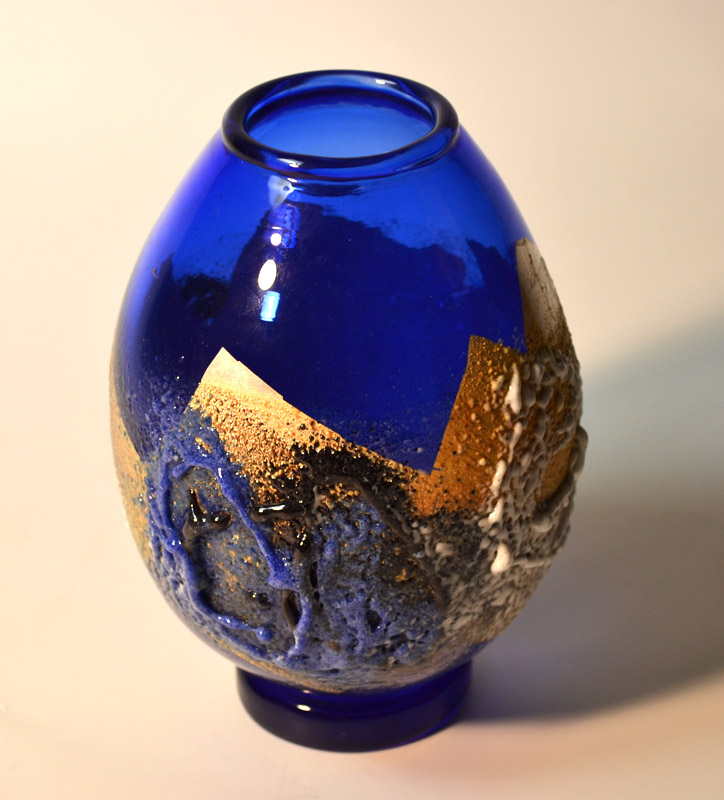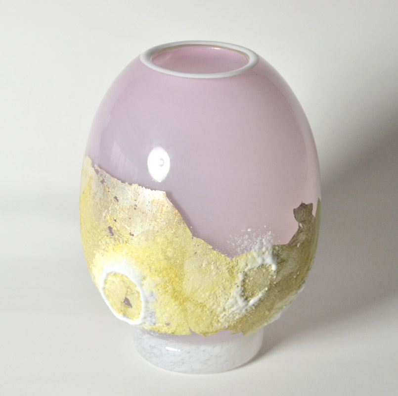海外にいると自身のアイデンティティをとても意識する。イタリアの美しい色を用い、日本の伝統的な秘めた美しさを表現したいと思い独自の技法をあみだした。粒子の細かいガラスの粉を大量に吹きつけ、抽象絵画的な作品が出来上がった。